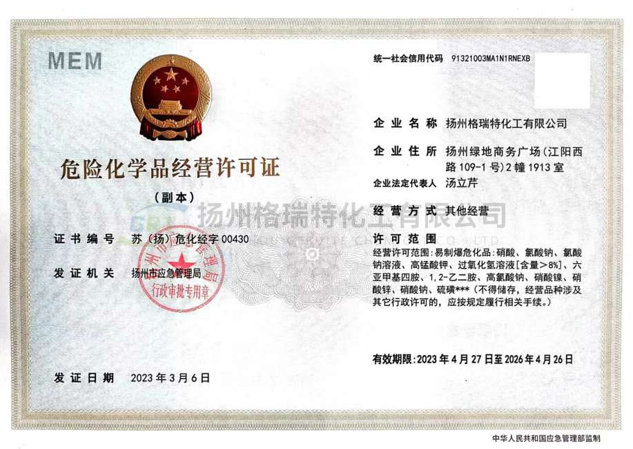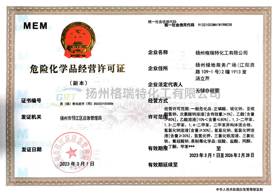 揚州格瑞特化工有限公司生產工廠坐落于江蘇省海安縣胡集工業園區和海安精細化工工業園??偣境闪⒂?999年,是集科、工、貿為一體的現代化生產型企業。專業致力于水處理劑、紡織印染助劑、化纖油劑等產品的科研、開發、生產和銷售??偣菊嫉孛娣e40000m,建有現代化標準廠房,擁有先進的生產設備。年產各類水處理劑系列產品12000噸,紡織印染助劑5000噸,產品12個系列40多個品種。總公司注重技術投入,設立產品研發中心和環保運營中心,聘請了多位專家為公司技術顧問,并和多個重點院校建立了長期技術合作開發關系,是南通大學、江南大學、南京工業大學產學研基地。